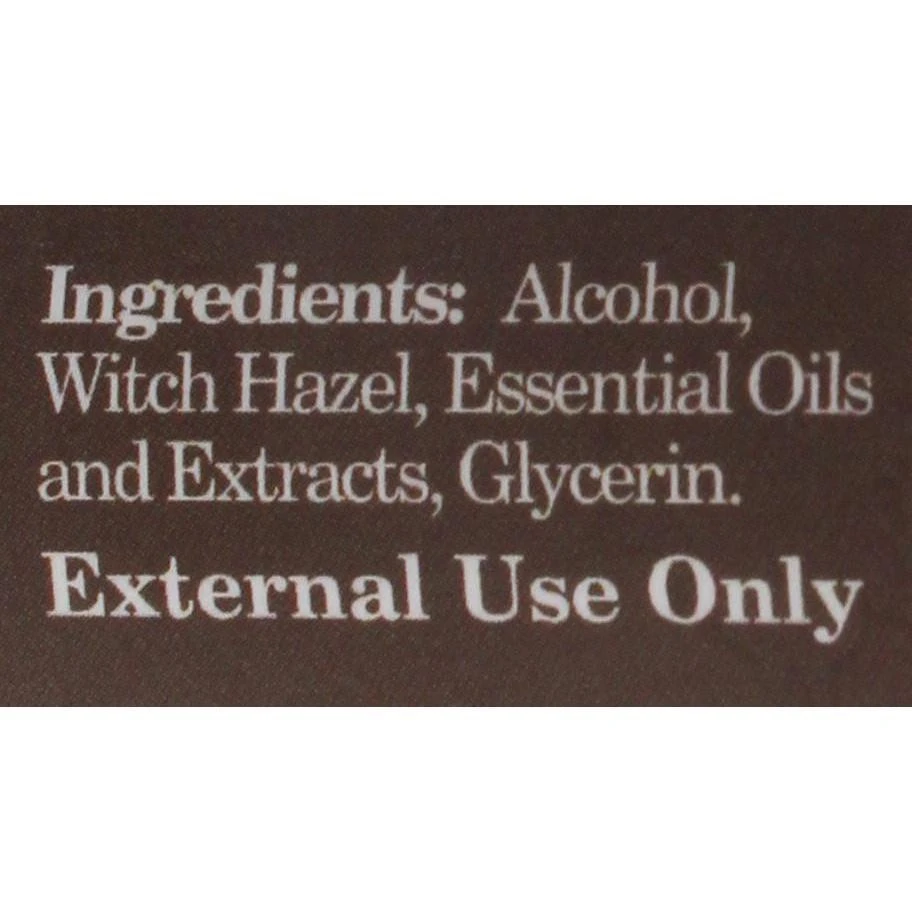 Ingredients: Alcohol, witch hazel, essential oils and extracts, glycerin