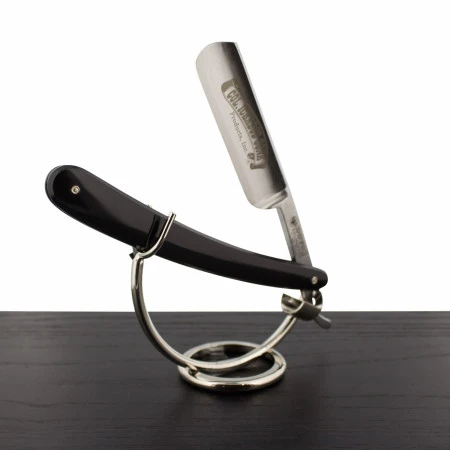 Ideal for both novice and experienced wet shavers, this straight razor features a high carbon steel blade that retains its sharpness over time. However, regular stropping and honing are recommended to ensure long-term edge maintenance. With proper care, including rinsing the razor with clear water after each use and thorough drying, this instrument will become a cherished addition to your grooming routine. The simple yet sophisticated black acrylic handle offers a comfortable grip and balanced control, making it an excellent choice for those venturing into straight razor shaving for the first time. Choose the Dovo 6/8″ Straight Razor for a timeless grooming tool crafted with precision and expertise.