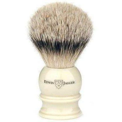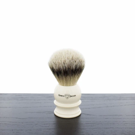 Edwin Jagger continues to impress with its top-of-the-line shaving brush filled with exceptional quality silver tip badger hair. Designed for the serious wet shaver, this brush boasts an extra-large knot that ensures ample lather with any soap or cream. The beautiful handle, handmade of polyester with a faux ivory finish, adds a touch of elegance to your grooming routine. With precise dimensions and a substantial filled weight, this brush is a worthwhile investment piece that promises both style and functionality for years to come.