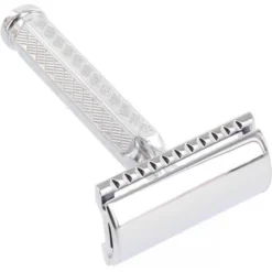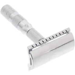 The Feather Stainless Steel Safety Razor is considered by many to be the finest double edge razor available today. The AS-D2 is the second generation and made a great razor even better. It is a three-piece safety razor made with exquisite fit and finish. With precision tolerances and advanced blade centering design, you can be sure your blade is straight. The mild geometry matches perfecting with their extra-sharp Feather blades.The handle pairs with the head for great balance and has a tight knurled pattern for a firm and comfortable grip.Beautifully packaged in a burgundy gift box with matching stainless steel stand and one pack of Feather double edge razor blades.Made in Japan.