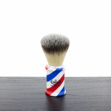 Experience the convenience and quality of a barber shop right in the palm of your hand with Omega’s classic synthetic brush. Designed with a handle reminiscent of a traditional barber shop’s aesthetic, featuring vibrant reds, whites, and blues, this brush is not only functional but also a collector’s item. Whether displayed in your barber shop, bathroom, or shaving showcase, it adds an eye-catching touch to your grooming routine.
