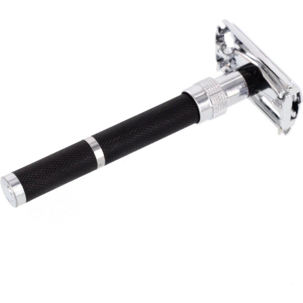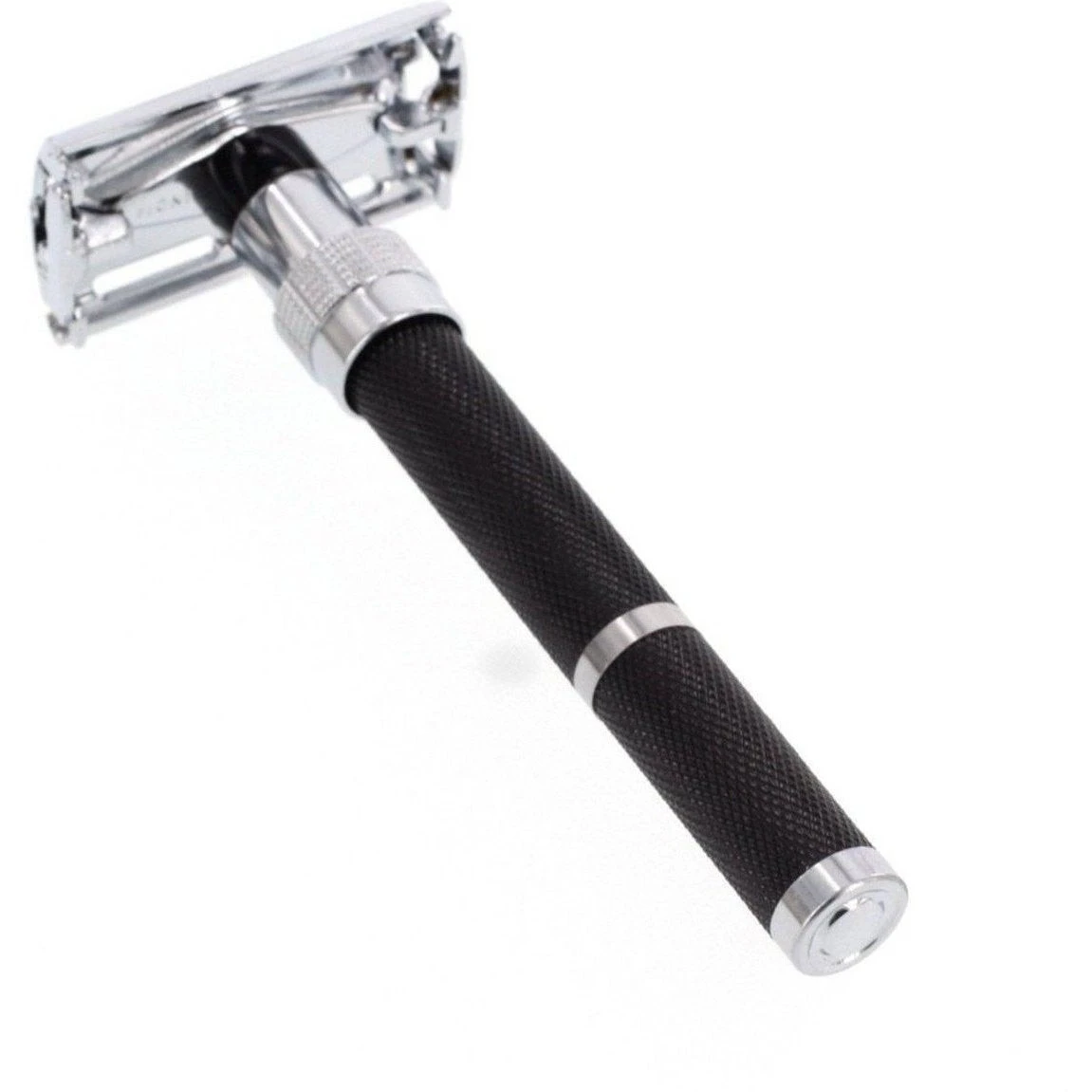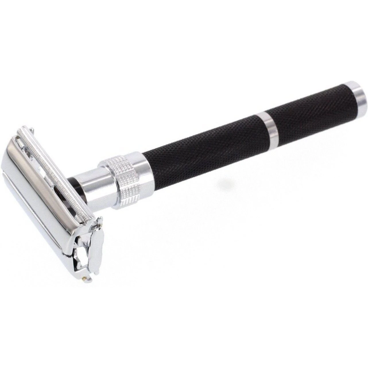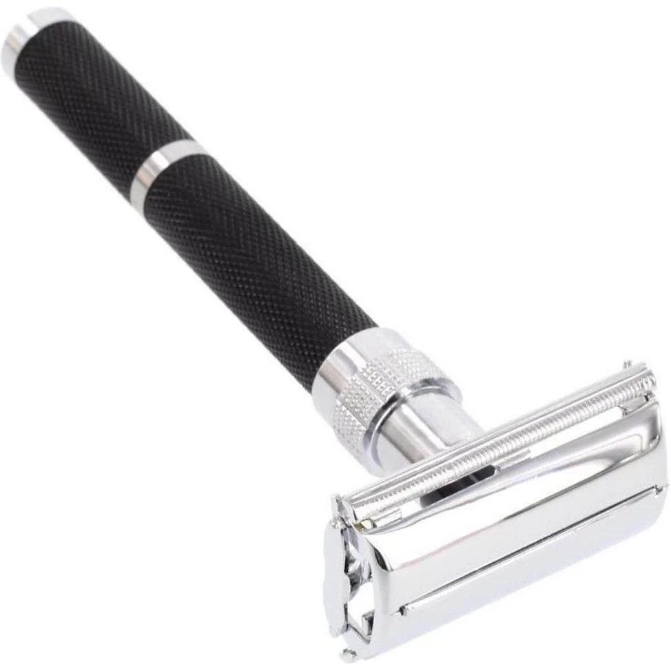 Parker’s commitment to enhancing the double edge wet shaving experience shines through in the design of the Parker 96R Safety Razor. With nearly four decades of expertise in crafting shaving solutions, Parker has addressed the common frustration of blade changing with this innovative razor. Featuring a butterfly head mechanism, this razor simplifies the process of blade replacement with a simple twist, making it a convenient choice for wet shavers seeking efficiency without compromising on performance.