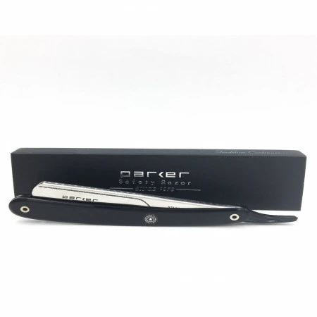 Designed for convenience and ease of use, the Parker PTB Straight Razor features a black, sturdy handle and a stainless steel arm that securely holds any preferred DE blade, split in half. This innovative design allows for effortless blade changing without the need for stropping or honing. Simply snap the blade in half and insert it into the removable stainless steel blade holder. The razor’s rounded exposure at the end of the blade compartment minimizes the risk of cuts, while its sturdy construction and balanced weight ensure smooth gliding across the skin without excessive pressure. Part of Parker’s “Barber razor” line, this shavette razor is ideal for both professional barbershop use and at-home grooming routines, offering versatility and precision for a clean and comfortable shave every time.