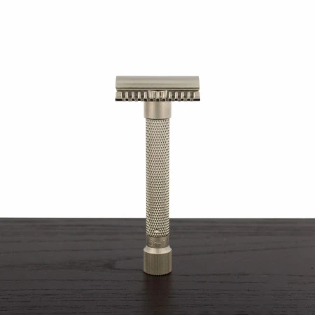 It is the perfect razor for beginners and experts alike. The blade angle can be adjusted by turning the knob on the bottom of the razor, so that the exposure can be set to each individual’s preference. This beautifully designed satin chrome electroplated all brass frame is a heavyweight, smooth shaver. Parker Safety Razor has been making the highest quality, precision engineered safety razors for over 50 years.