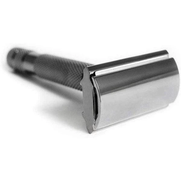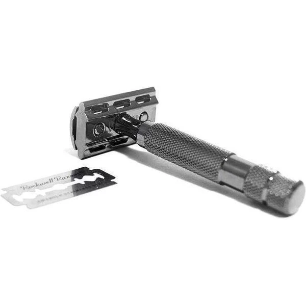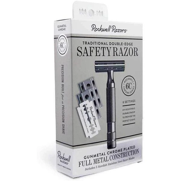 With clear respect for the double-edge safety razor of the past but with a desire for innovation, Rockwell developed an adjustable head shaving utensil that gives every man the perfect shave. Interchangeable, flippable heads allow you to find the exact spacing and angle that works for your facial hair type. This 6C razor is cast from high-end zinc alloys and then chrome-plated in a striking gunmetal gray for a beautiful and long-lasting finish. The handle boasts non-slip knurling and great balance to give you a close, comfortable shave.