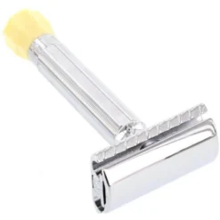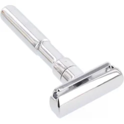 Pick your finish from the drop-down menu. They offer aesthetically pleasing chrome razors in brushed, gunmetal, or white chrome. The box comes with a razor, extra blades, a leather sheath (for travel), and an instruction card.