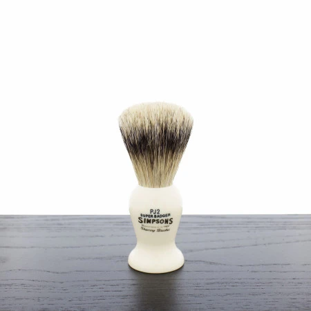 The Simpson Persian Jar shaving brush epitomizes classic English craftsmanship and quality. Handmade in England, this brush features a hand-tied knot filled with dense Simpson Super badger hair, known for its luxurious softness and excellent water retention. With a faux ivory handle and traditional design, it exudes timeless elegance and sophistication.