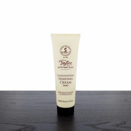 - Taylor’s rich, long-lasting shaving cream in a travel-sized tube