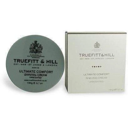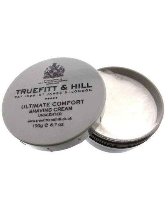 Truefitts’ Ultimate Comfort Range is specially formulated for gentlemen with sensitive skin. Ultimate Comfort Shaving Cream is designed to provide the closest shave while at the same time protecting and aiding in the repair of the shaver’s skin.L avender essential oil is a gentle antiseptic which helps to heal skin, while moisturizing glycerin improves glide and comfort ensuring that this cream forms a thick, rich lather. Ultimate Comfort is part of our unscented range, so contains no additional scent.