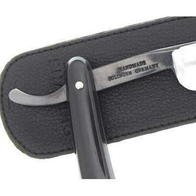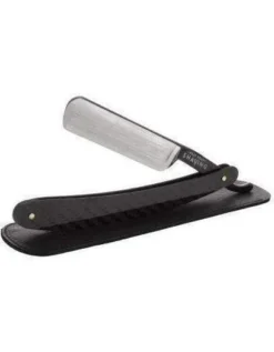 Crafted with a 5/8″ blade ideal for general beard growth removal, this razor boasts a full hollow grind and carbon steel construction for superior performance. The audible feedback of the blade’s “sing” ensures a close and precise shave, while the razor’s elegant black handle and classic black synthetic scales exude sophistication. Each razor is etched with the WCS logo and “Handmade Solingen Germany” on the tang, assuring you of its exceptional quality and craftsmanship. Additionally, each blade comes shave-ready in a stylish Black Nappa leather sheath, providing both protection and a touch of luxury to your grooming arsenal. Invest in the WCS Black Straight Razor for a shaving experience that combines timeless tradition with modern precision and elegance.