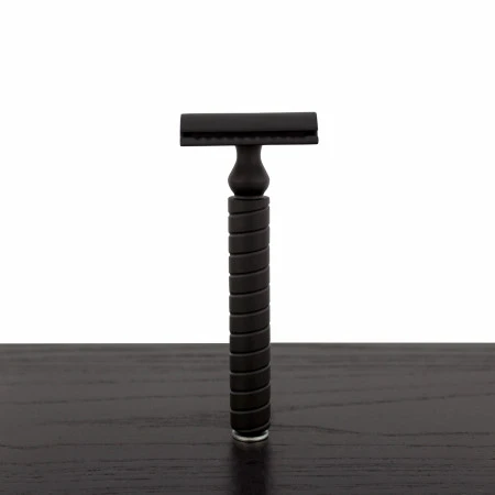 This nostalgic handle is constructed with solid 303 stainless steel and coated with black so it is long-lasting, corrosion-resistant, and dramatic. Reminiscent of a striped pole, this handle might put you in mind of a main street storefront, plate-glass windows, newspaper strewn leather chairs, and the quiet snip of scissors. The spiraling provides grip in wet environments. The classic heads are zinc-alloy with black-coating (Lithe and Toothsome available in Chrome only). The handle is compatible with most standard 3-piece, DE safety razors.