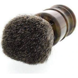 The hair is placed into our sturdy “Torch” handle. The acrylic tortoise handle is a cylindrical, squared off shape that isn’t quite as curvy as many traditional options. This handle gives some character to your shave with its pattern and depth. The mottled handle might just have graced your grandfather’s shaving den, back in the day. Just a rinse and wipe with a soft cloth will keep it looking good-as-new.