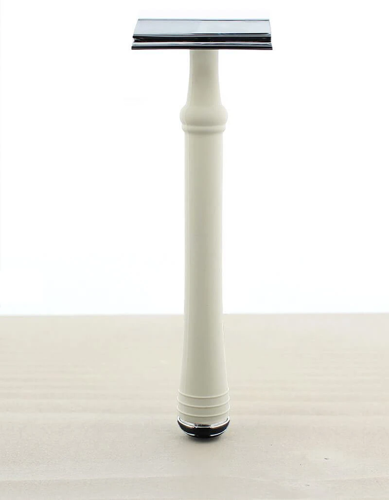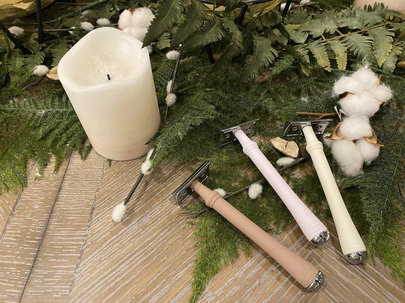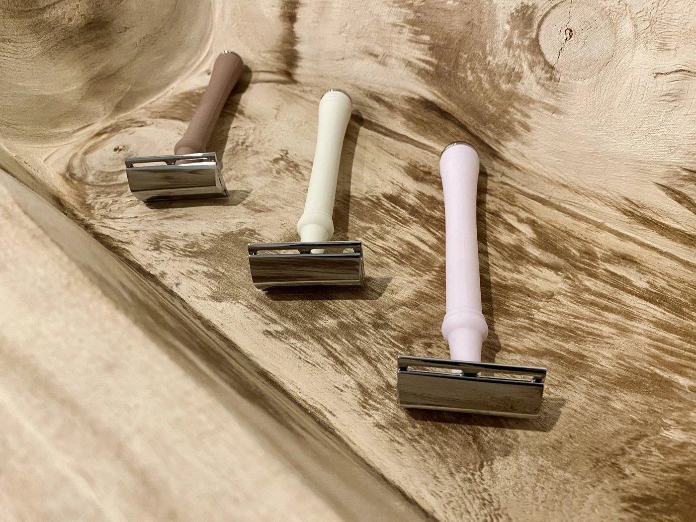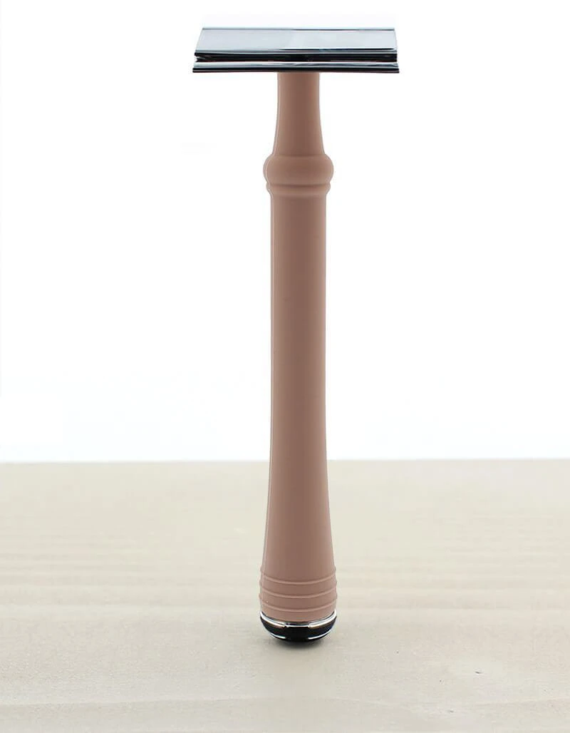 This double-edge safety razor for women is an efficient, elegant, and enjoyable tool. With its silicone handle, you can get a grip – even in wet environments like the shower or bath. You can choose the color that works for you. Get classic ivory, sweet blush pink, or luscious mocha to reflect your decor or your attitude.