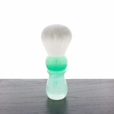 Complementing the brush’s functionality is its visually appealing design. The handle, crafted from resin, showcases a tall and slender silhouette adorned with a striking two-toned aqua green color scheme. With a light translucent base transitioning into a collar of slightly darker green, this handle not only provides a comfortable grip but also adds a touch of elegance to your grooming routine. Whether you’re a seasoned wet shaver or new to the practice, Yaqi’s Traditional Shaving Brush offers a combination of performance and style that caters to a wide range of preferences.